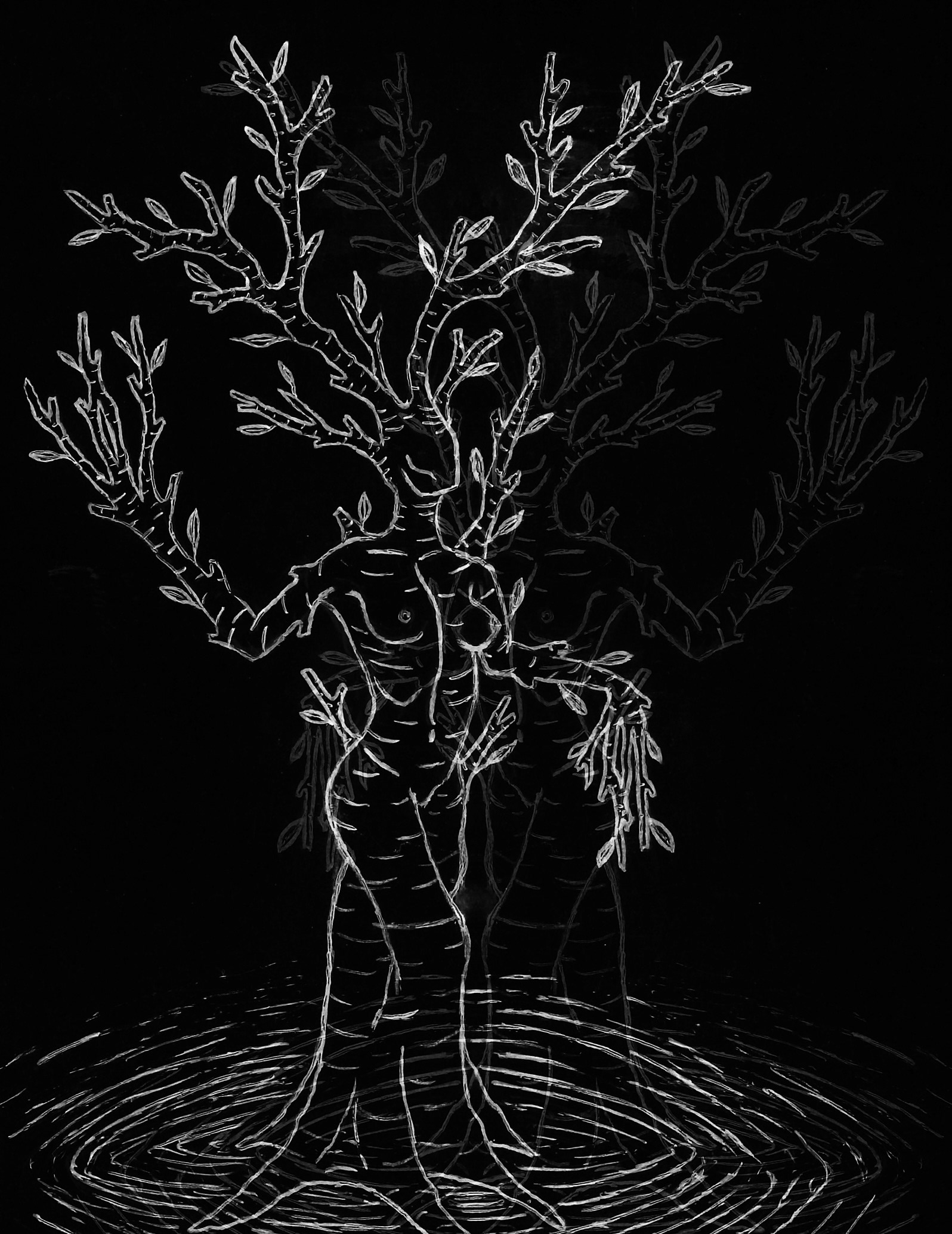 The figure in my logo—a white ink drawing of a woman, part human, part tree—represents transformation, connection, and the ancient wisdom of nature. She is both druid and dryad, rooted yet reaching, embodying the balance between the spiritual and the elemental.