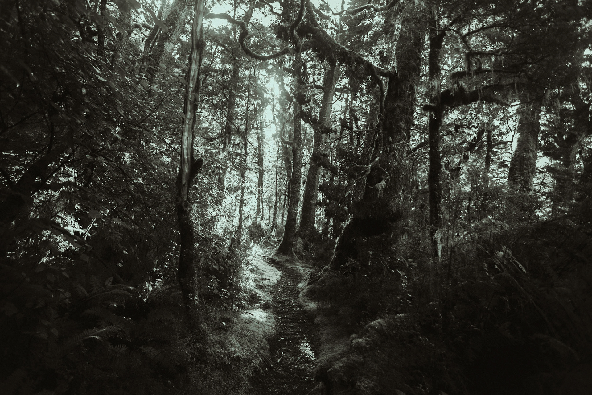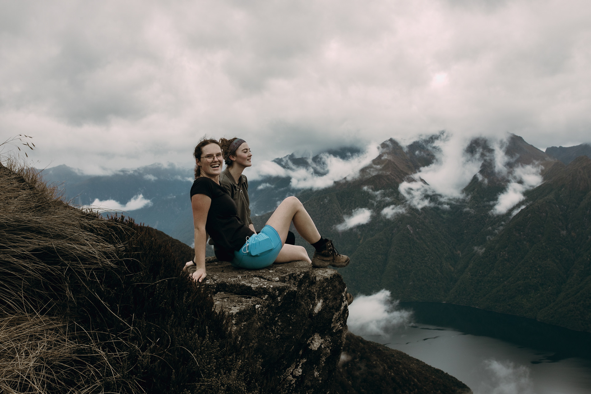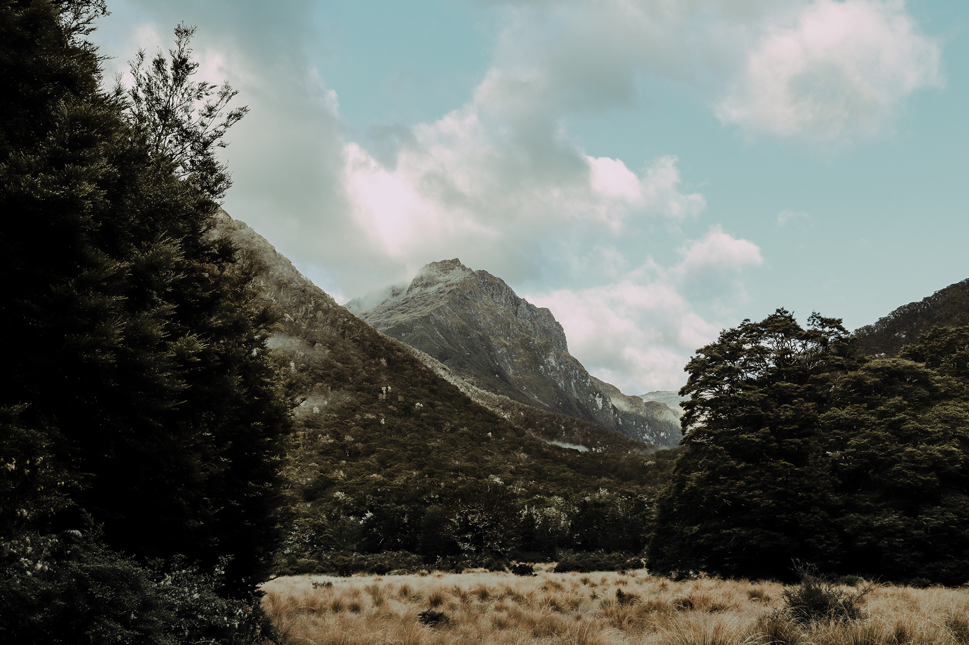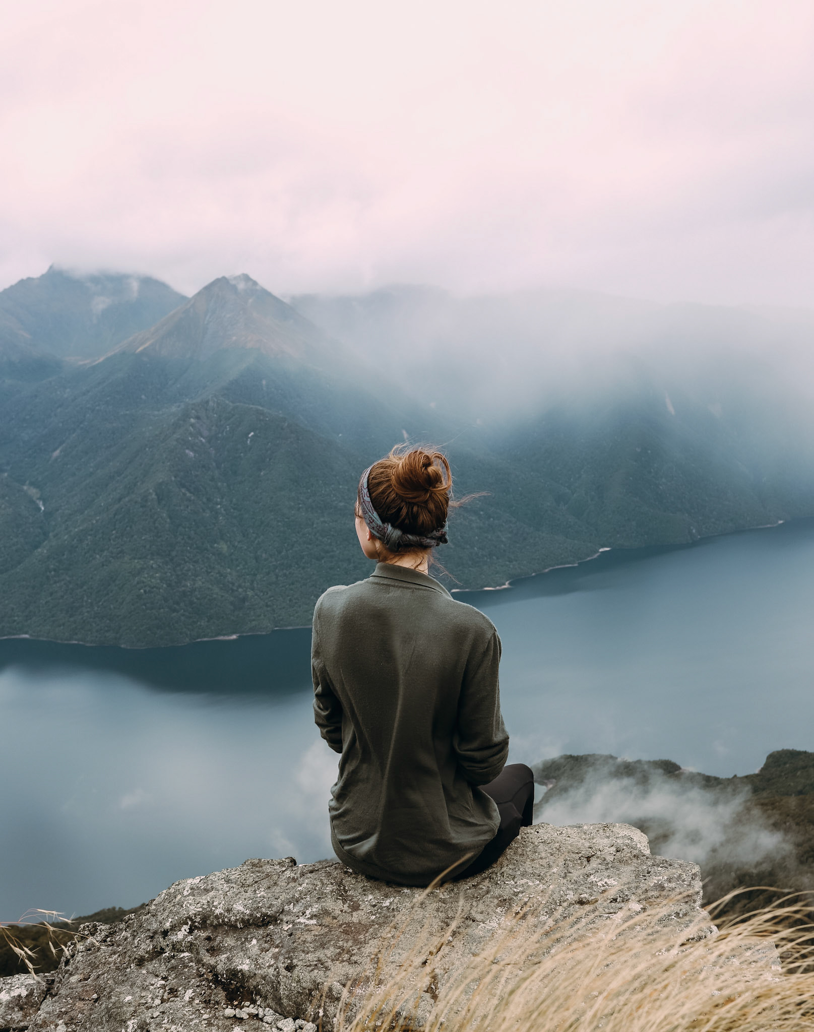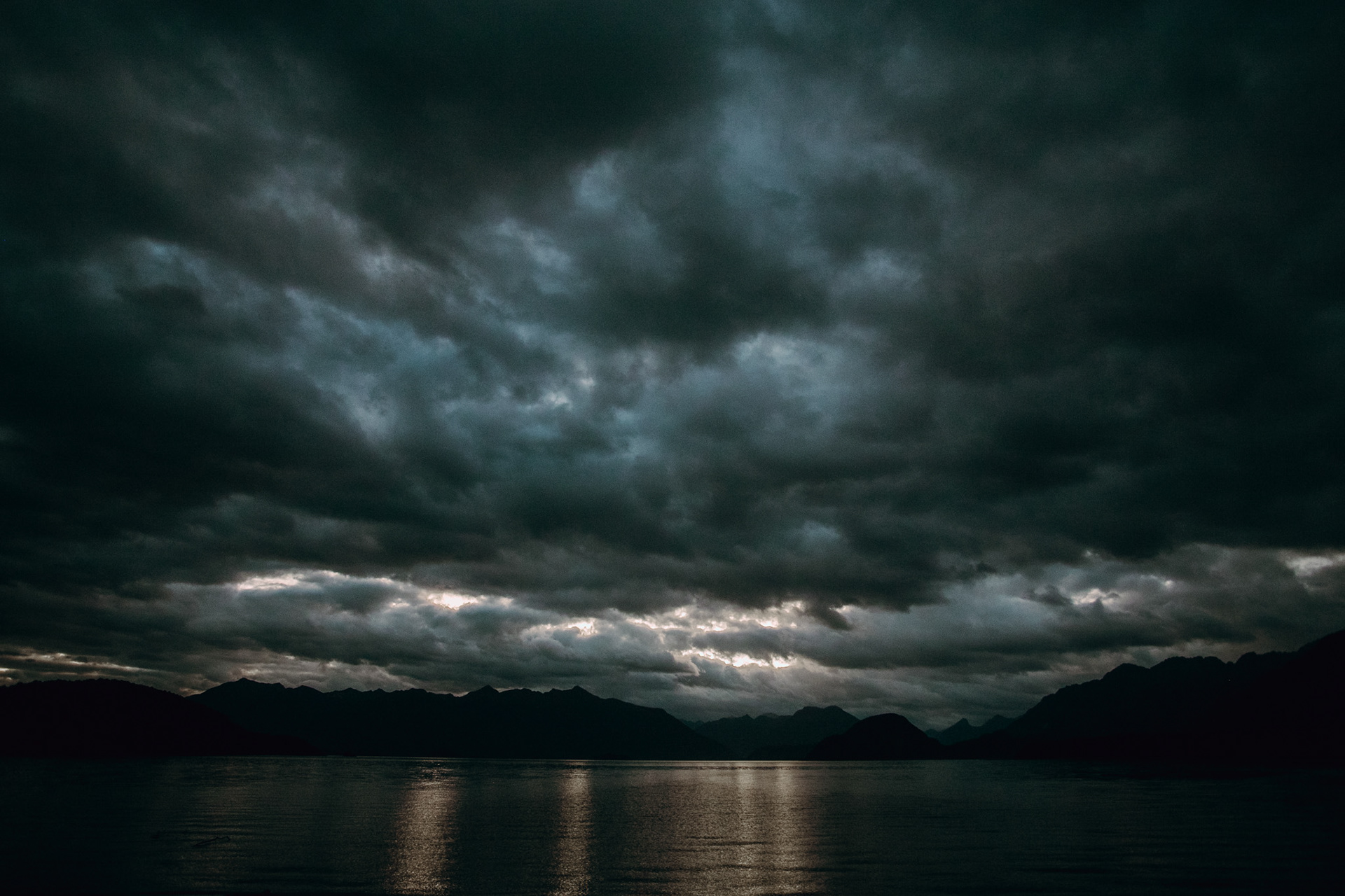 Low clouds began to drift and reveal the rugged contours of the mountain range surrounding Lake Te Anau. Shot from a high vantage point to emphasize the sweeping scale of the landscape - then mirrored composition in post to enhance the natural symmetry between the cloud forms and ridgelines.