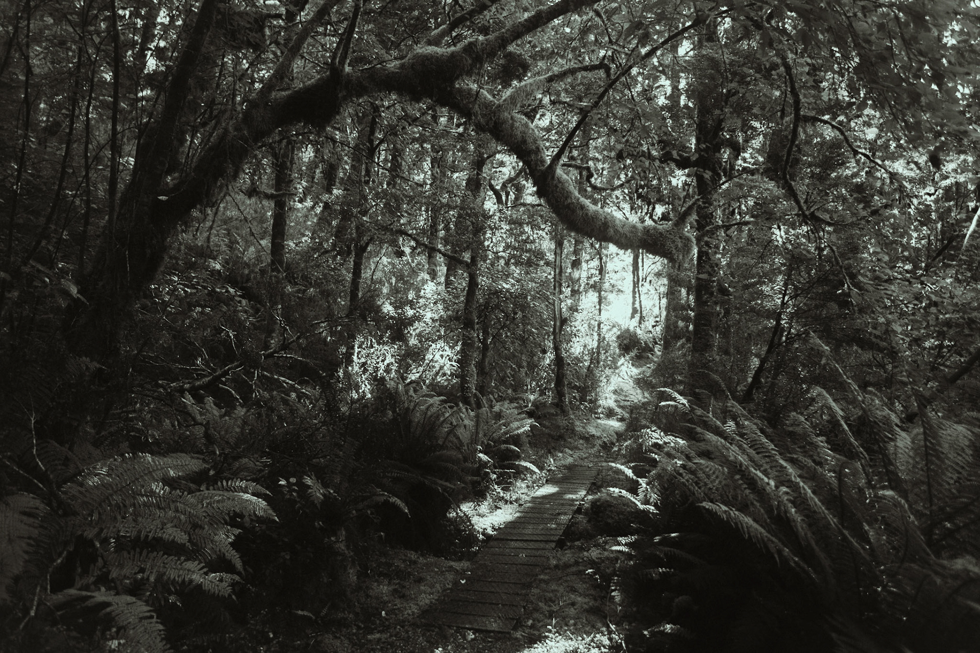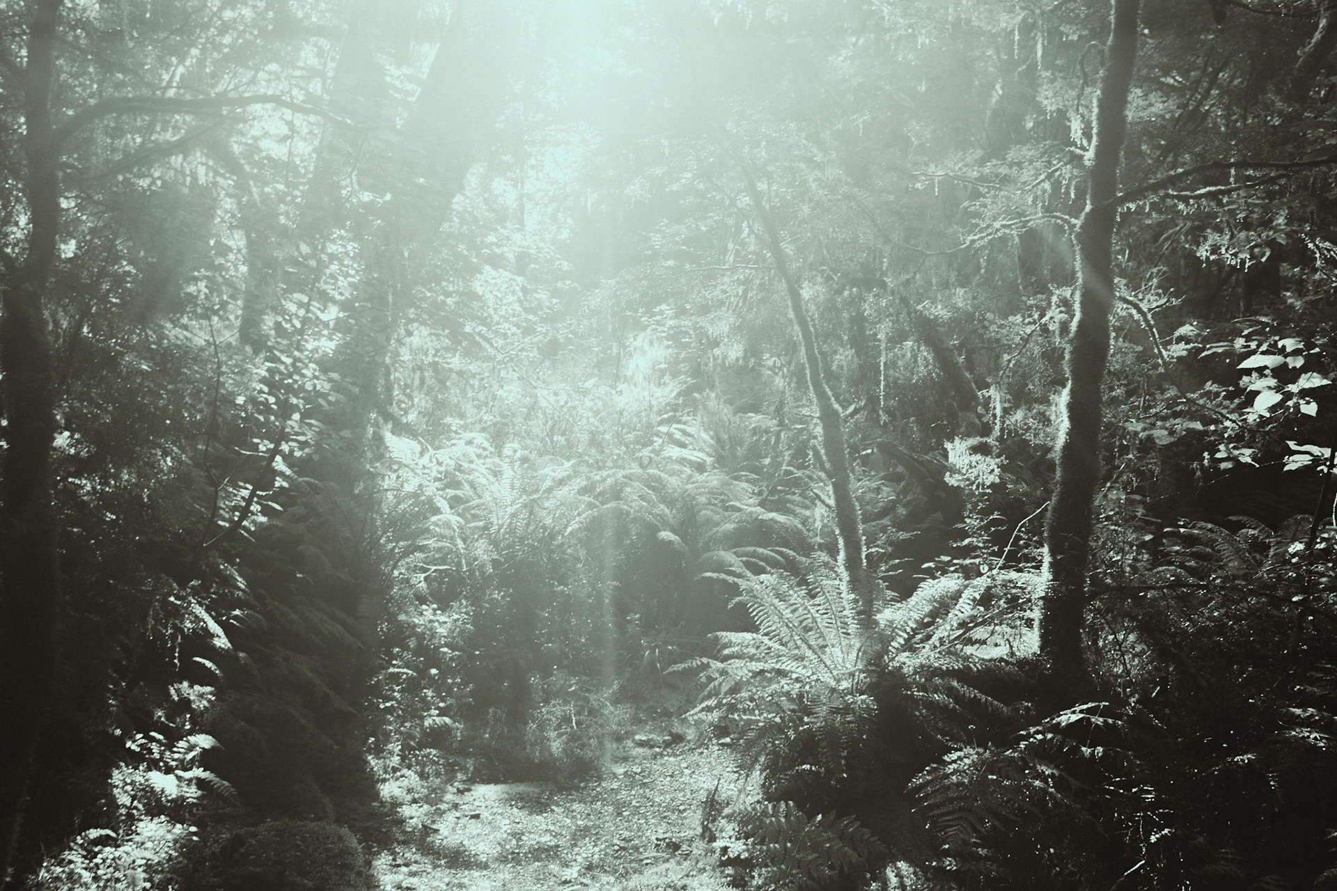 Using an SLR to study the tonal range of ferns and trees in natural light.